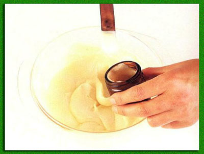 в смесь расплавленного воска и масла и непрерывно перемешивайте, пока крем
