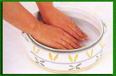 ножные или ручные ванны, при этом пользуйтесь водой. Сначала 4 минуты принимайте